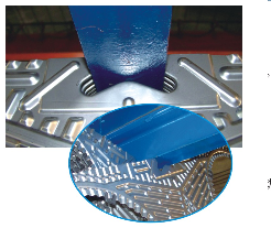 1、采用獨特定位技術,為避免板片在拆裝時上下定位槽發(fā)生變形,定位裝置采用了翻邊加工設計,多次拆裝后定位仍然精確、定位點更耐磨,同時也起到了防止定位槽對維修人員的損傷。板片四個角邊采用輔助定位錐型裙邊,達到自動對位之目的。